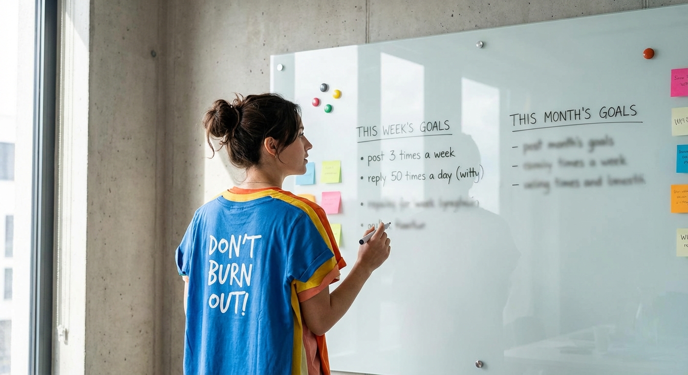 Time-based goals focus on input: spend 30 minutes engaging daily, publish three posts weekly, reply to five accounts each session. These are fully within your control. Consistency becomes achievable because the goal doesn't depend on factors you can't influence.